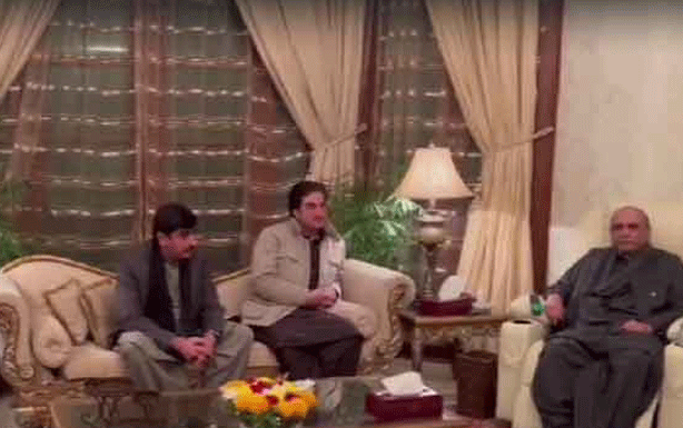 پ پ جي شريڪ چيئرمين آصف علي زرداري جي گورنر هائوس ۾ خيبر پختونخواهه جي گورنر غلام علي سان ملاقات ٿي، جنهن ۾ پ پ جو وفد ۽ جي يو آءِ (ف) جا اڳواڻ به موجود هئا، ملاقات ۾ صوبي جي سياسي معاملن تي خيالن جي ڏي وٺ ڪئي وئي.