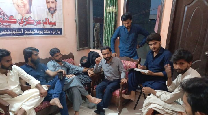 ڪراچي (رپورٽ : ثناء ﷲ هڪڙو) سنڌ يونائيٽيڊ اسٽوڊنٽس فيڊريشن ڪراچيءَ جو اجلاس مرڪزي صدر جلال شاه بخاري جي صدارت ھيٺ محمود آباد ۾ ٿي گذريو.اجلاس ۾ ڪراچي پريس ڪلب اڳيان شاگرد يونين جي بحاليءَ لاءِ 18 تاريخ تي چويھن ڪلاڪن جي بک ھڙتال جو فيصلو ڪيو ويو.اجلاس جي ڪارروائي مرڪزي سيڪريٽري جنرل ڄام آڪاش ديدڙ ھلائي.