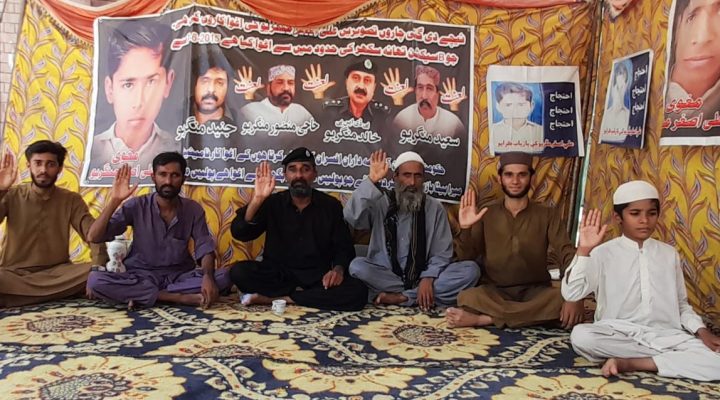 سکر(بيورو رپورٽ: ماجد منگي) سکر جي معصوم نينگر اصغر علي منڱريو کي اغوا ٿئي 9 سال ٿي ويا سندس بازيابي لاء وارثن پاران جاري احتجاج کي 257 ڏينهن ٿي ويا پر مغوي نينگر جي بازيابي نه ٿي سگهي سکر پريس ڪلب اڳيان معصوم علي اصغر منڱريو جي بازيابي لاءِ 257 هين حج واري ڏينهن به لڳاتار رات ڏينهن احتجاج جاري رکيو احتجاجي ڪئمپ تي موجود مغوي جو والد زاهد حسين منڱريو سميت اعظم منڱريو ،محمد علي ۽ احمد علي مڱريو جو چوڻ هو ته علي اصغر منڱريو کي 2015 ۾ سکر جي ايوب گيٽ وٽان اغوا ڪيو ويو هو جيڪو اڄ تائين بازياب ناهي ٿيو