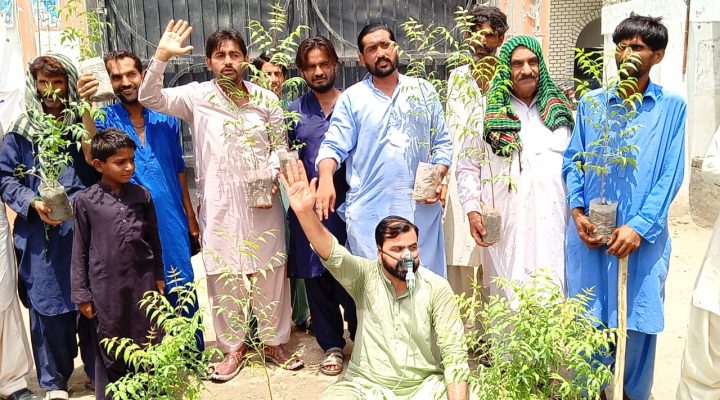 سانگهڙ ۾ وڻن جي غير قانوني واڍي خلاف سماجي اڳواڻ پاران آڪسيجن وارو ماسڪ پائي انوکو احتجاج