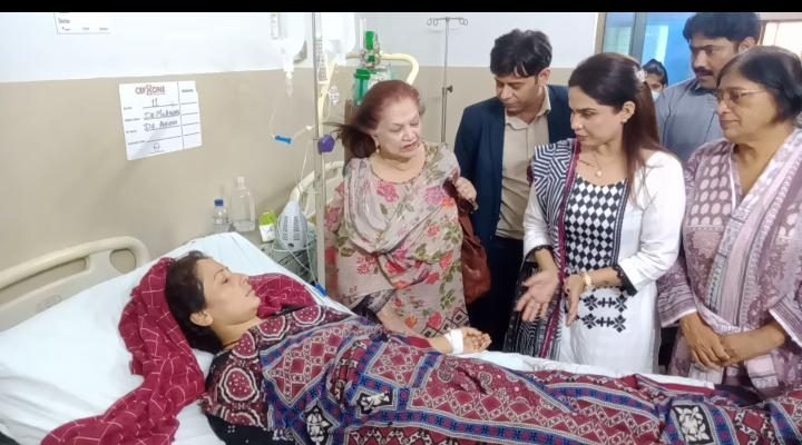 جڏھن ته اڄ ھيوومن رائيٽس سنڌ جي عورت اڳواڻن انس ھارون، شيرين اعجاز، مھر افشان ميمڻ ۽ ٻين پي ايم سي اسپتال جي ھڏن واري وارڊ ۾ پھچي مسمات صوبيه بتول جي عيادت ڪئي،