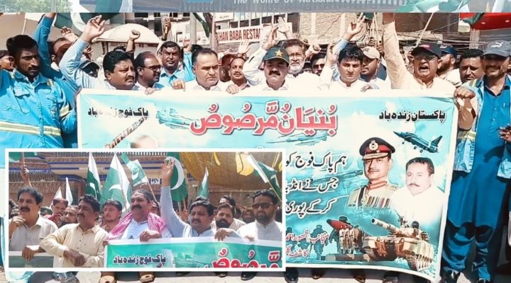 سکر (رپورٽ: امداد گل ڪلوڙ) پاڪ فوج پاران ڀارتي جارحيت خلاف آپريشن (بنيان المرصوص) جي ڪاميابي ۽ پاڪ فوج سان يڪجهتي جو اظھار ڪندي پاڪ فوج يڪجهتي ريلي سرڪل آفيس کان ڪڍي وئي ريلي ۾ آل پاڪستان واپڊا هائيڊرو اليڪٽرڪ سينٽرل ورڪرز يونين (سي بي اي) جي سيپڪو ملازمن جي وڏي انگ پاڪستان فوج يڪجهتي ريلي ۾ شرڪت ڪئي