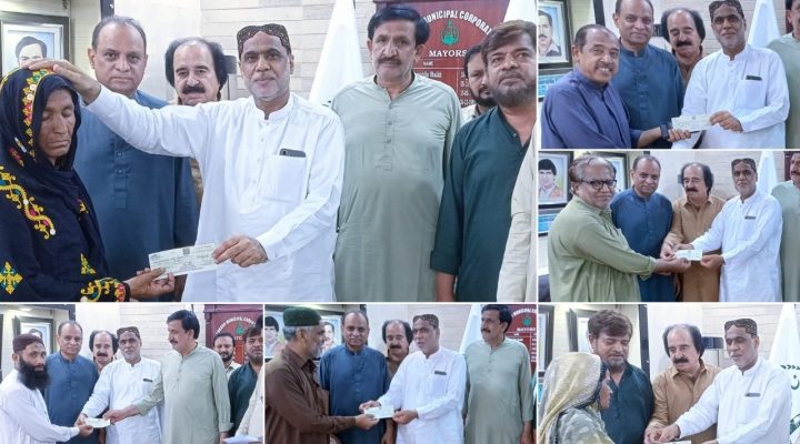 گذريل رات يو سي چيئرمين احسان لاشاري ۽ ميونسپل ڪارپوريشن جي سينيئر آفيسر عابد علي انصاري رٽائرڊ ۽ فوت ٿيل ملازمن جي وارثن ۾ بقاياجات جا چيڪ ورهايا ، اڪائونٽس آفيسر غلام محمد سولنگي ، ايڊوائيزر آغا بشير پڻ ان سان گڏ هئا.