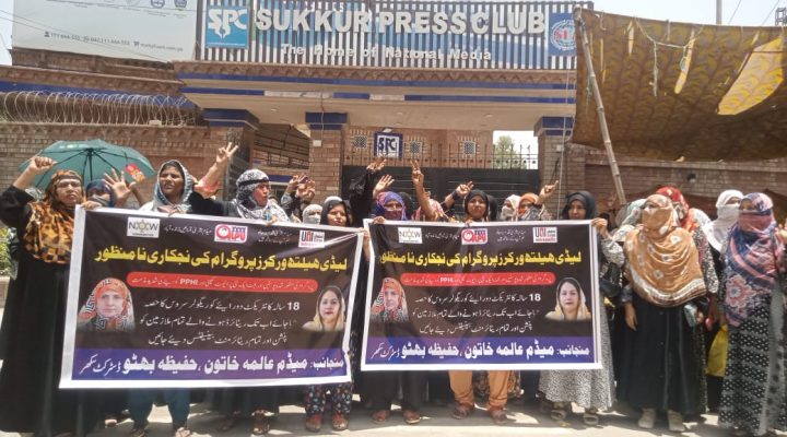 ليڊي هيلٿ ورڪرز جو سکر ۾ پي پي ايڇ آءِ حوالي ڪرڻ خلاف احتجاج، حقن جي تحفظ لاءِ اعليٰ اختيارين کان نوٽيس وٺڻ جو مطالبو