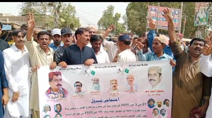 سڪرنڊ (رپورٽ: راج ڪماراوڏ) آل پاڪستان ڪلرڪ ايسوسئيشن تعلقي پاران بجيٽ ۾ ملازمن جون پگھارون نه وڌائڻ خلاف تعلقه ايجوڪيشن آفيس سڪرنڊ کان قاضي سرفراز چوڪ تائين ضلعي صدر عرض محمد چانڊيو ۔ تعلقي صدر  ڌڻي بخش ملاح ۔ علي انور ڪيريو ۔ امام بخش سيال ۔ پ ٽ الف اڳواڻ فاروق جمالي ۽ ٻين جي اڳواڻي ۾ احتجاجي ريلي ڪڍي وئي