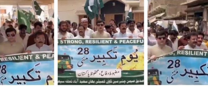 سيوھڻ: يومِ تڪبير تي ڀان سيدآباد ۾ شاندار ريلي، پاڪ فوج سان ڀرپور يڪجهتي جو اظهار