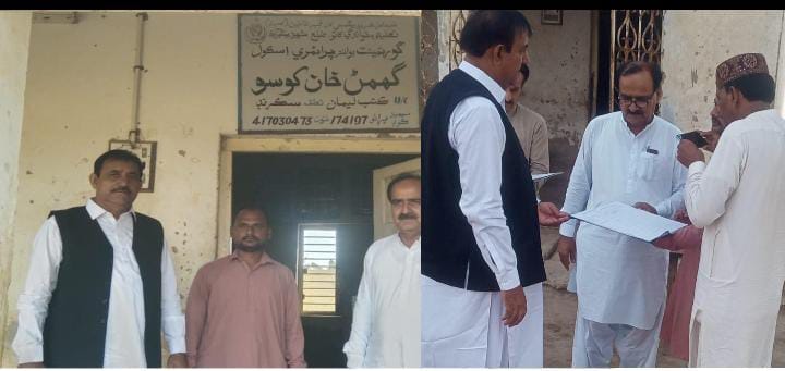 صوبائي محتسب اعلي سنڌ جي هدايت تي شهيد بينظير آباد ۾ گورنمينٽ بوائز پرائمري اسڪول گھمڻ خان کوسو جو اوچتو دورو