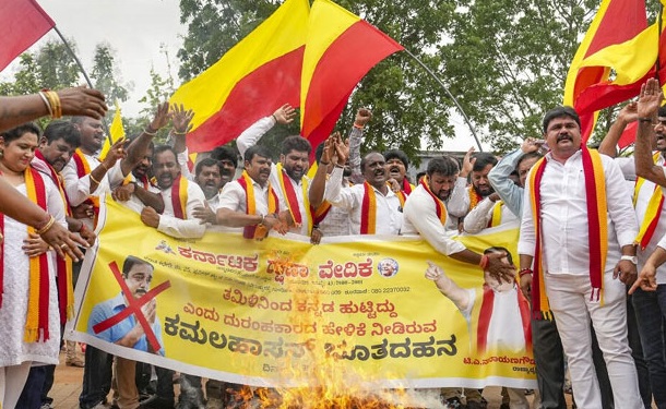 پرڏيهي ميڊيا رپورٽن موجب، ڪمل هاسن فلم جي پروموشن دوران چنائي ۾ صحافين سان ڳالهائيندي چيو هو ته ” ڪنڙا، تامل ٻولي جي پيداوار آهي.“