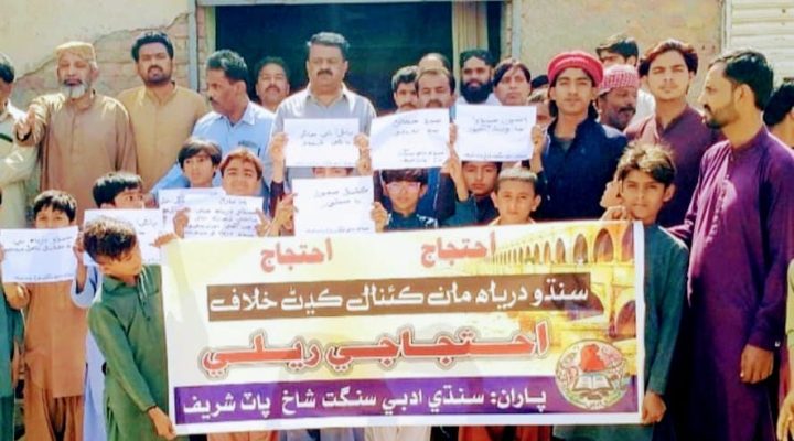 ڦلجي اسٽيشن: سنڌي ادبي سنگت پاران غيرقانوني ڪينالن، ڪارپوريٽ فارمنگ ۽ راشد مورائي جي گهر تي چڙهائي خلاف احتجاج