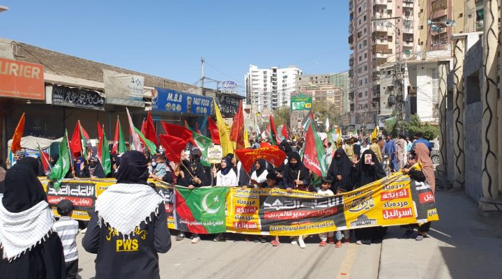 احتجاج اڄ نمازِ جمعه کان پوءِ ٿيو، جنهن دوران اسرائيلي جارحيت جي سخت لفظن ۾ مذمت ڪئي وئي.