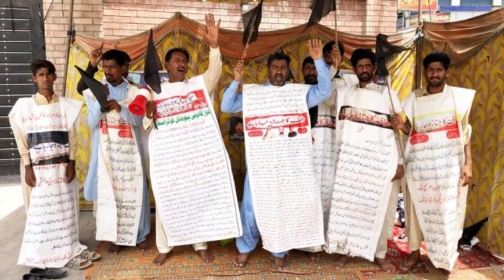 سکر ۾ ڪفن پوش تحريڪ پاران پنوعاقل پوليس خلاف احتجاج