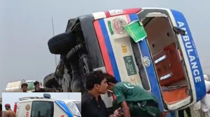 سکر ويجهو تيز رفتار ريسڪيو 1122 ايمبولينس ڪلٽي، مريض ۽ ڊرائيور زخمي