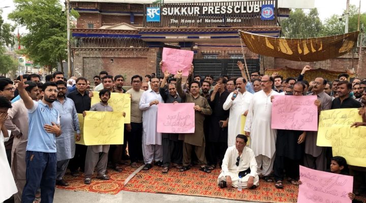 سکر ( رپورٽ: امداد گل ڪلوڙ) سکر شھر ۾ وڌندڙ بدامني، بيقانوني، ڊاڪٽين، چورين ۽ لٽ مار جي وارداتن خلاف هندو پنچائت سکر پاران سکر پريس ڪلب آڏو ڀرپور احتجاجي مظاهرو ڪيو ويو ۽ علامتي ڌرڻو پڻ ڏنو ويو۔ مظاهري جي اڳواڻي هندو پنچائت جي اڳواڻن مڪي ايشور لال، سنيِل ڪمار، چندر ڀان ۽ ٻين ڪئي۔ احتجاجي مظاهري ۾ هندو پنچائت جي اڳواڻن، واپاري برادري، شھري ۽ مختلف سماجي طبقات سان تعلق رکندڙ ماڻهن شرڪت ڪئي۔\