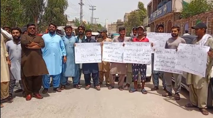 نوابشاه ( رپورٽ: عبدالفتاح رند) نوجوان جمالي اتحاد پاران نوابشاھ پوليس خلاف نوابشاھ پريس ڪلب آڏو احتجاجي مظاهرو ڪيو جتي اڳواڻن سلمان جمالي سجاد عميس جمالي مرتضا جمالي ۽ٻين چيو ته ڪجھ ڏينھن اڳ ايئرپورٽ ٿاڻي جو ايس ايڇ او وسيم مرزا اسان جي معزز علي خان جمالي کي بلاجواز کنڀي منشيات جي ڪوڙي ايف آئي آر داخل ڪري ڇڏي آهي