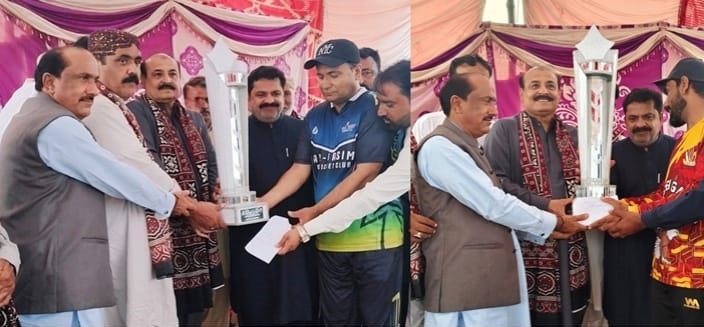 گڏاپ ٽائون ۾ ڪرڪيٽ فائنل ميچ، چيئرمين حاجي طارق عزيز بلوچ ۽ ايم پي اي يوسف مرتضیٰ بلوچ پاران نوجوانن لاءِ راندين جي واڌاري جو اعلان