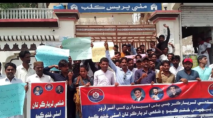 مٺي (ڊ-ر) ٿر جي پوليس کاتي ۾ پوليس ۾َ ٽيسٽ پاس ڪندڙ اميدوارن جو آفر ليٽر نه ملڻ خلاف احتجاجي مظاهرو انصاف ڪريو نعري بازي احتجاجي مظاهرو پريس ڪلب مٺي اڳيان هٿن ۾ بينر ۽ پلي ڪارڊ کڻي اميدوارن علي محمد نهڙي, بشير چوهاڻ, علي محمد سميجو، شاهد چوهاڻ، عبدالڪريم سميجو، سڪندر نهڙيو ۽ ٻين شرڪت ڪري هنن چيو ته اسان پوليس ۾ ڀرتي لاءَ هر مرحلو پاس ڪيو آھي,
