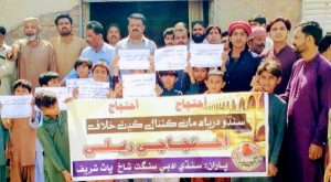ڦلجي اسٽيشن: سنڌي ادبي سنگت پاران غيرقانوني ڪينالن، ڪارپوريٽ فارمنگ ۽ راشد مورائي جي گهر تي چڙهائي خلاف احتجاج