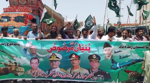 سکر ( رپورٽ:امداد گل ڪلوڙ) پاڪ فوج جي حمايت ۽ پاڪستان جي شاندار فتح جي خوشي ۾ سکر موٽر ورڪس ايسوسيئيشن پاران سيد سجاد علي شاھ ۔اڪرم مستوئي ۔محبوب حسين۔نعيم مغل۔شھزاد۔اڪبر مغيري۔شبير بودي جي اڳواڻي ۾ ڊينٽر پينٽر مڪينڪ ڪالوني بس ٽرمينل سکر کان مسترين جي وڏي انگ ريلي ڪڍي سکر شڪارپور روڊ تي ڀارت […]