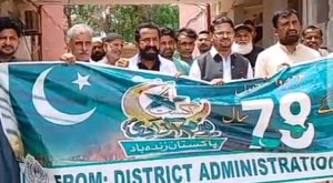 ڪوٽڙي ڊي ايچ ڪيو اسپتال ۾ جشن آزادي ريلي ۽ پرچم ڪشائي، پاڪ فوج کي ڀيٽا پيش