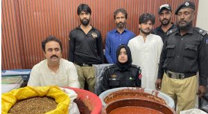 ملير سٽي پوليس جي ڪارروائي: منشيات وڪرو ڪندڙ ٽولي جي ٻن عورتن سميت چار ڄڻا گرفتار، منشيات ۽ رقم هٿ