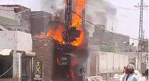 سکر: نمائش چوڪ تي ٽرانسفارمر ۾ اوچتو باهه، دڪان سميت لکين جو سامان سڙي ويو، بجلي جي فراهمي معطل